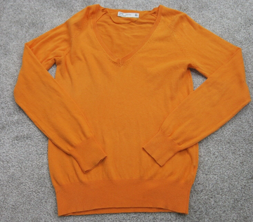 ZARA BASICS Womens V Neck Knitted Pullover Sweater Long Sleeves Orange Size L