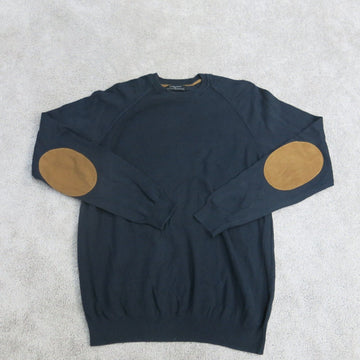 Zara Man Sweater Mens Medium Blue Crew Neck Long Sleeve 100% Cotton Knitted