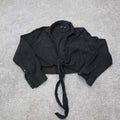 Zara Woman's Cropped Top Basic Front Knot T Shirt Long Sleeve Black Size 28