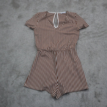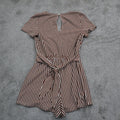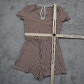 Zara Women V Neck Stripe Romper Short Sleeves Tie Waist White Maroon Size Medium