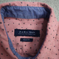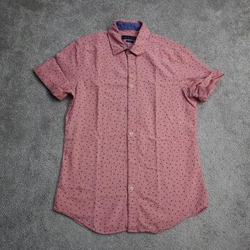 Zara Womens Button Up Shirt Short Sleeves Star Print Slim Fit Pink Size Small
