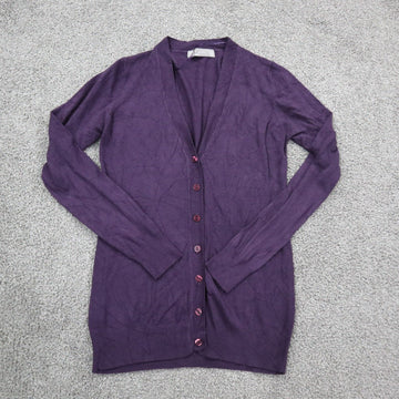 Zara Womens Cardigan Sweater V Neck Long Sleeves Solid Purple Size Medium