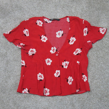 Zara Womens Cropped Blouse Top V Neck Short Sleeve Orange Size Small