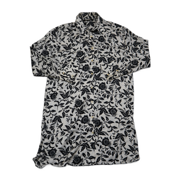 Zara Womens Shirt Dress Shift Mini Floral Print Long Sleeve White Black Size M