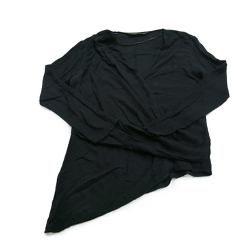 Zara Womens Wrap Blouse Top Asymmetric Hem V Neck Long Sleeves Black Size Small
